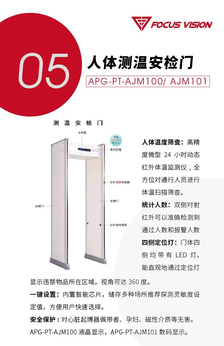 精准高效测温,同时可进行人数统计、金属探测,防止危险物品进入校区。