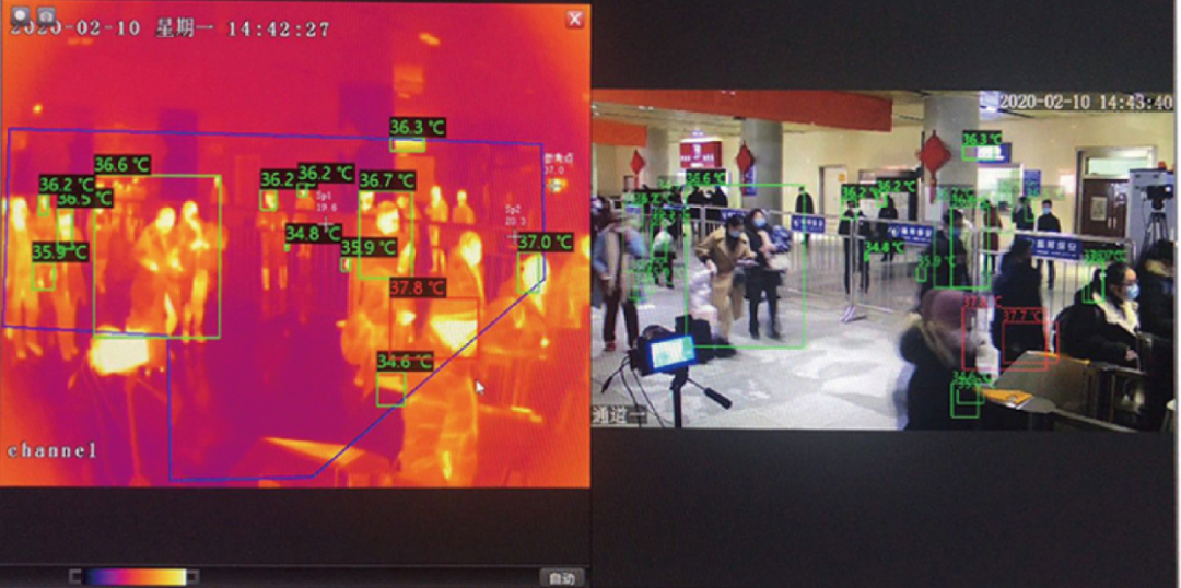 另一方面,红外热像仪是对于“面”的测温,能够做到在更远距离处精确测量物体的温度。疫情当前,红外热成像测温满足了快速、大面积安全排查的需要,是名副其实的“技术劳模”。同时又是一种远距离、不打扰的方式,被检测人员无需停留等候,值守人员也与被测人群保持着较为安全的距离,有效地减少感染风险。